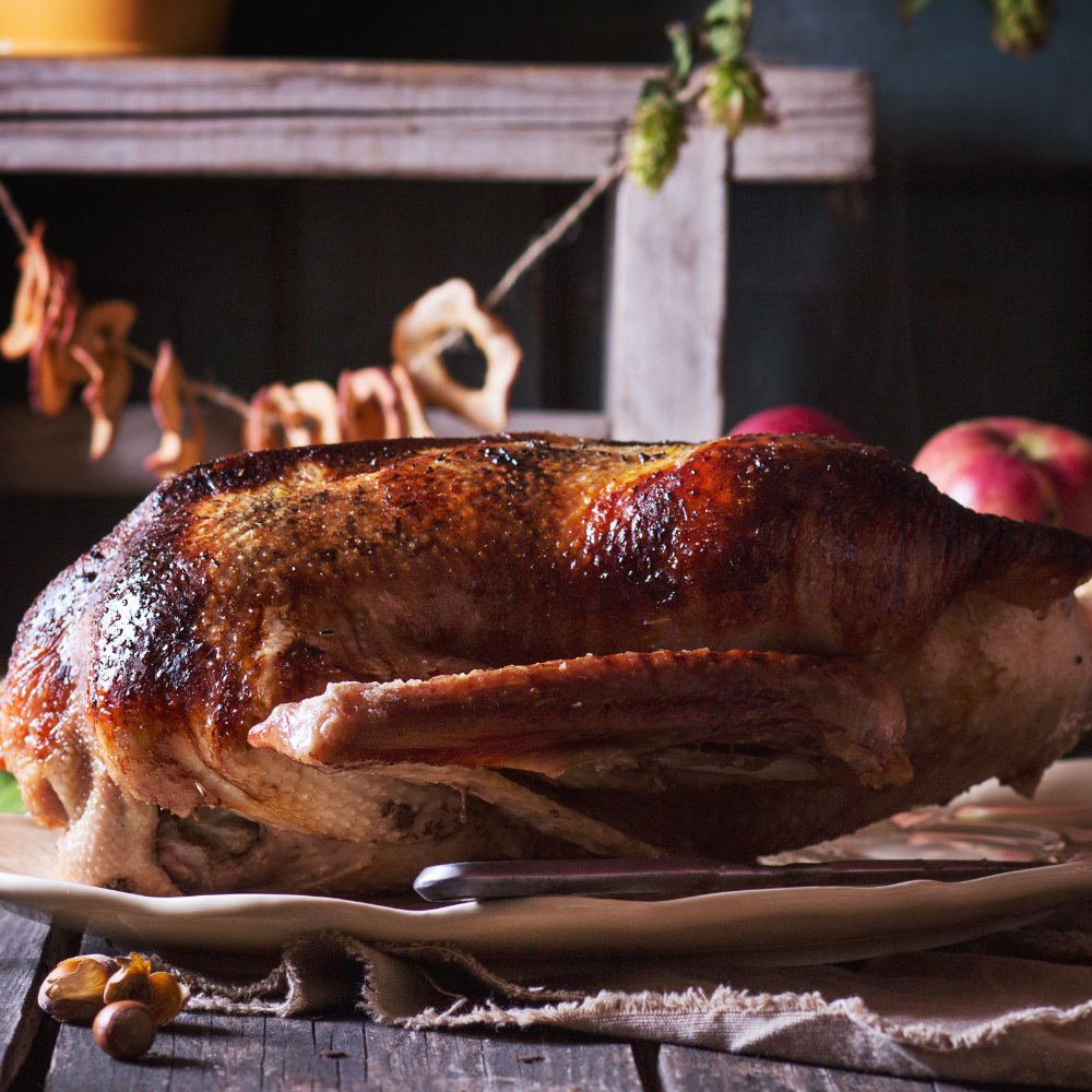 ¼ Gans mit Soße, Rotkohl, Grünkohl, Klößen und Preiselbeeren